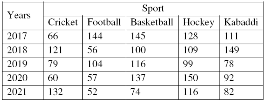 Directions (Question Nos. 32 to 35): The following table provides the details about the number of students in 5 different sports over the years.