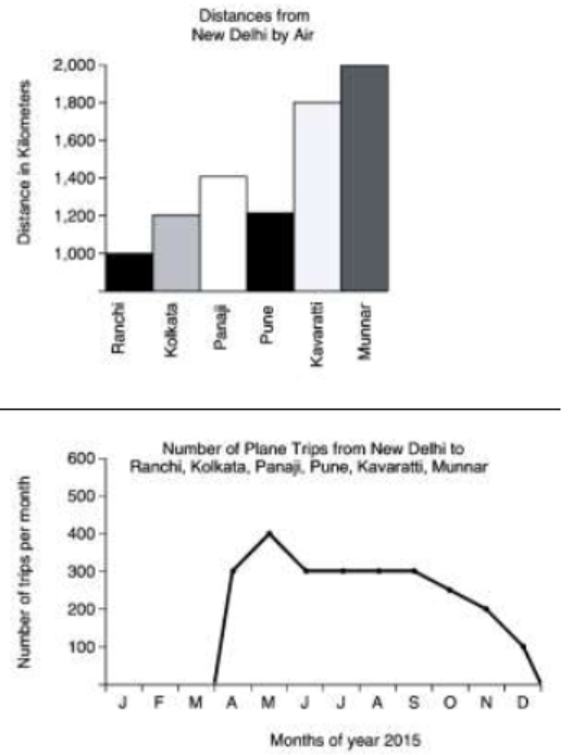 Directions (Q. No. 15 – 16) : Based on the information given below and diagram of an Airline’s trips to 6 cities from New Delhi in the year 2015 :