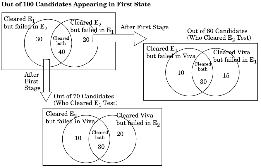 Directions (Q. No. 19 – 20) : Answer the following questions based on the information and diagram given below : An automobile company has advertised for the appointment of trainee engineers in different disciplines. First the applications received are thoroughly scrutinized and good ones are called to the main centre of the company for two written tests and a viva. The written tests are of 2 hrs duration each.