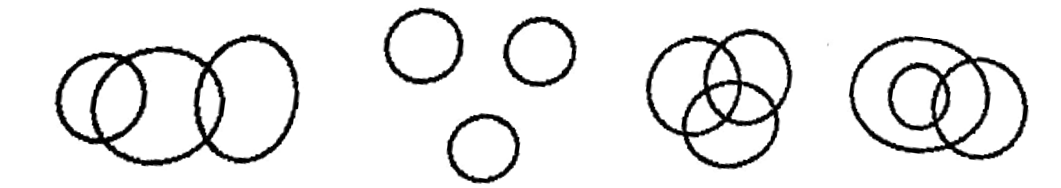 7. In the following each circle represents a group of things given below. From the four lettered diagrams below, choose the diagram which suits the correct relationship among the group of things given below :- Musicians, Men, Women